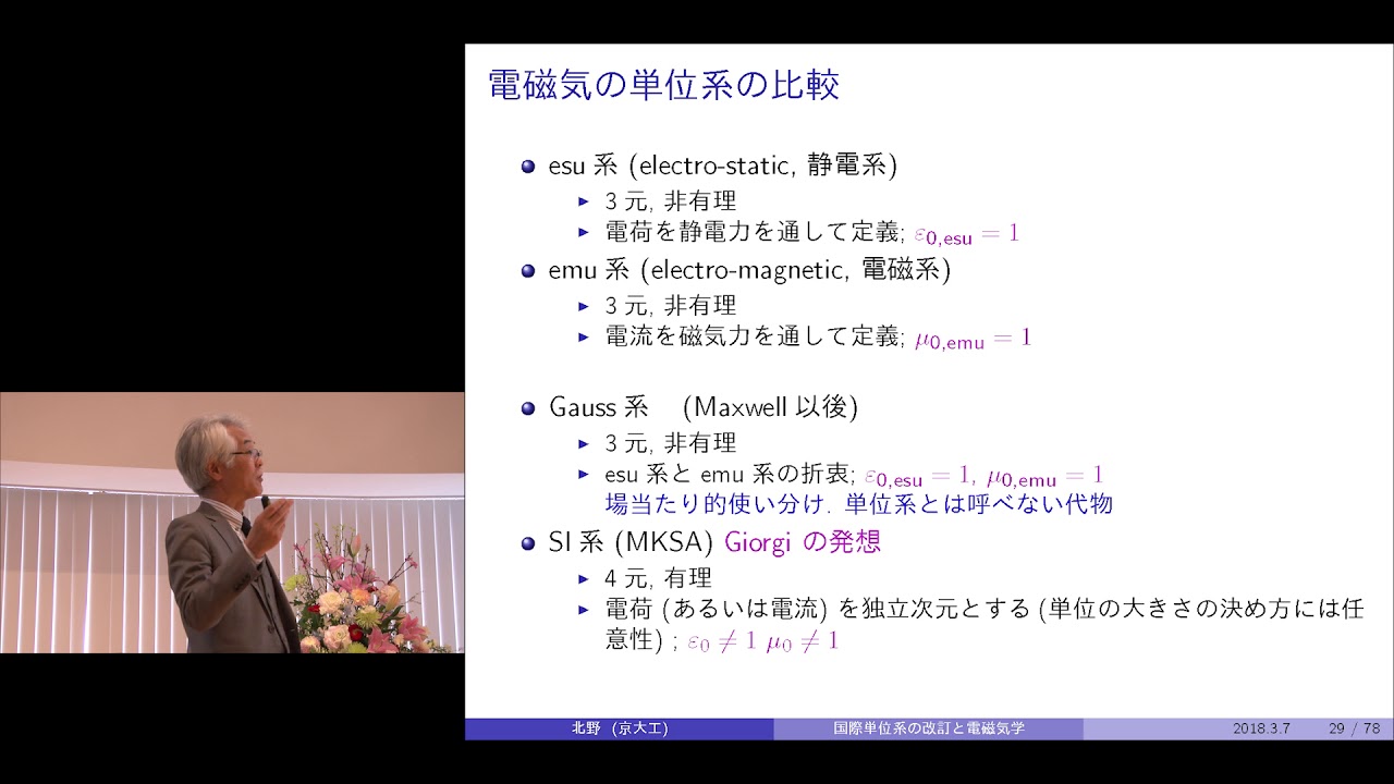 京都大学 17年度退職教員最終講義 北野 正雄 工学研究科 教授 国際単位系 Si の18年改訂と電磁気学の見直し 6 単位系 18年3月7日 Youtube