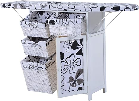 Amazon Co Jp Fdinspiration ホワイト ブラック 多機能 折りたたみ式 ドロップリーフ アイロン台 ラック シェルフ ユニットオーガナイザー 収納ボックス付き Eブック付き ホーム キッチン